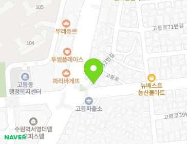 경기도 수원시 팔달구 고등동 107-11 ⛔ From January 1, 2014Korea uses the road name address. This address is a historical address. please use the road name address. |